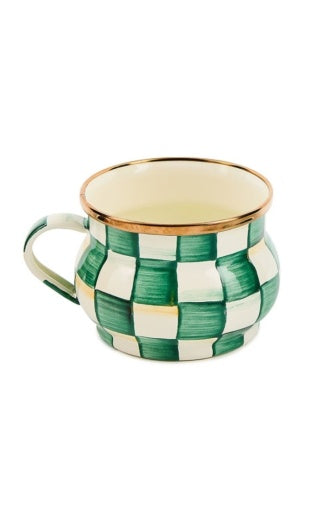 Heavy-gauge, hand-glazed steel underbody with hand-painted Emerald Checks, rimmed in bronzed stainless steel. Pieces may vary due to the handmade nature of each product. Imported.