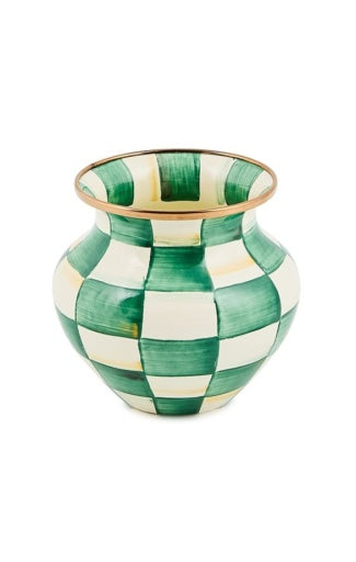Heavy-gauge, hand-glazed steel underbody with hand-painted Emerald Checks, rimmed in bronzed stainless steel. Pieces may vary due to the handmade nature of each product. Imported.