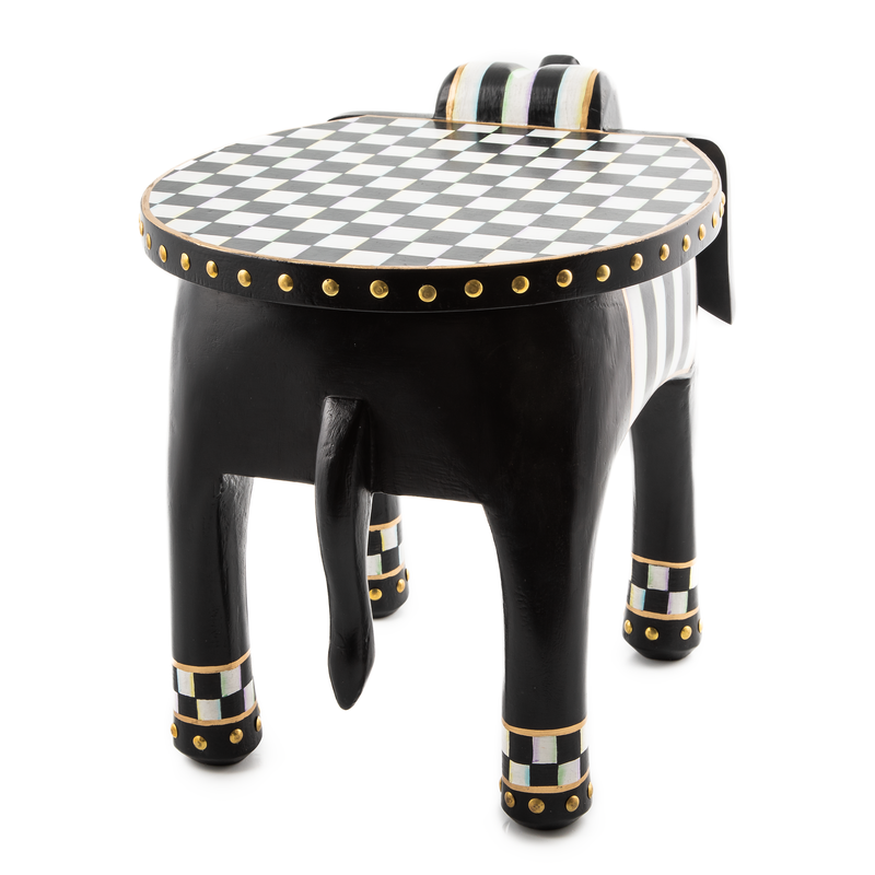 Hard wood construction, hand painted with check and brass dot details. Pieces may vary due to the handmade nature of each product. Imported.