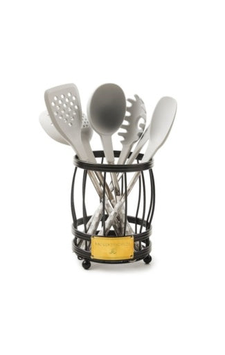 Caddy: Coated carbon steel with embossed brass logo plate. Utensils: Stainless steel handle with PBT utensil head. Spatula: Stainless steel handle with heat-resistant silicone. Pieces may vary due to the handmade nature of each product. Imported.