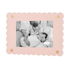 Scalloped acrylic 5" x 7" frame with brass rivet detail. Easel back.