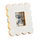 Marble frame with scalloped gold foil edge. Easel back. Holds 3 1/2" x 2 1/2" photo.