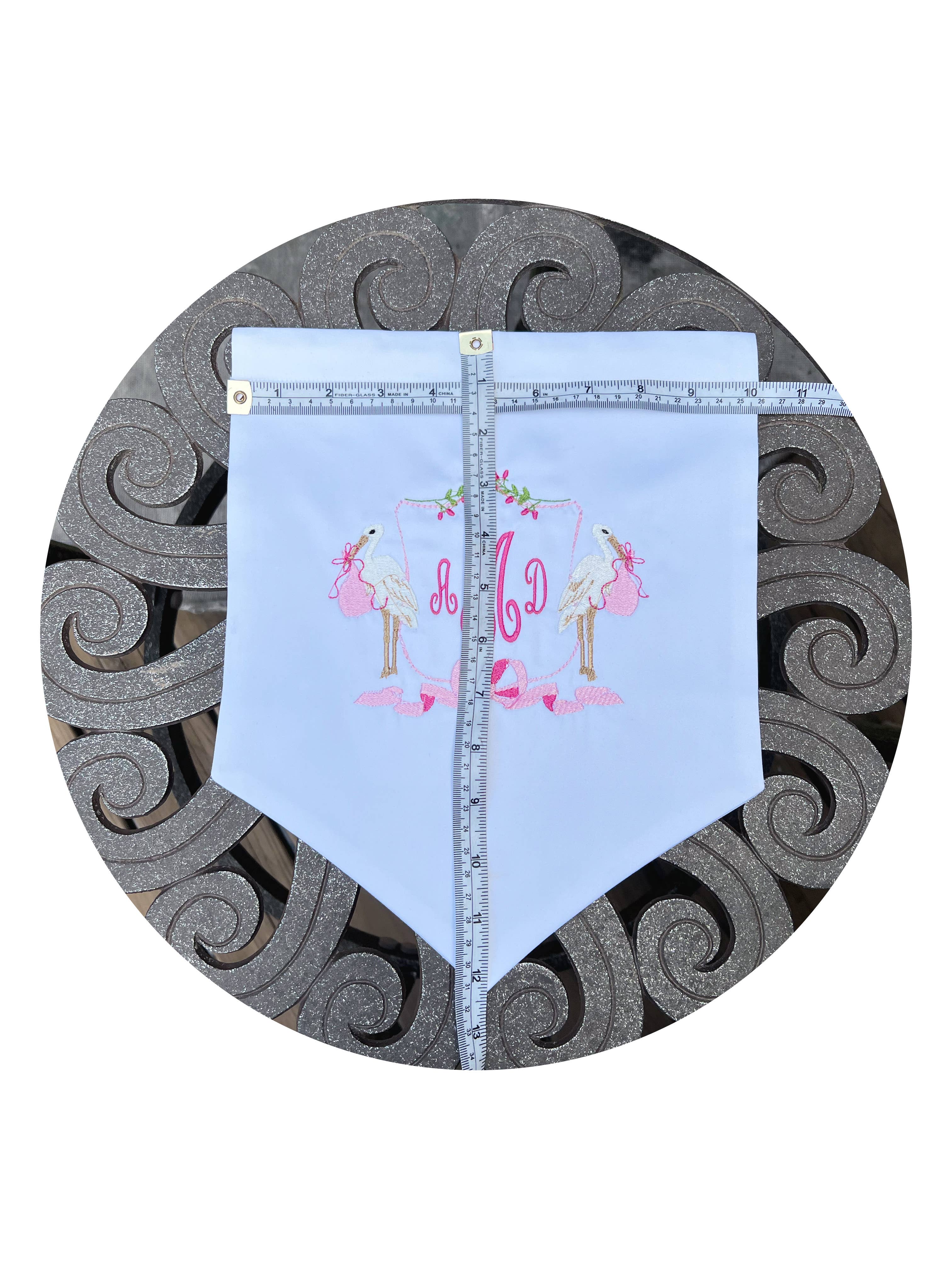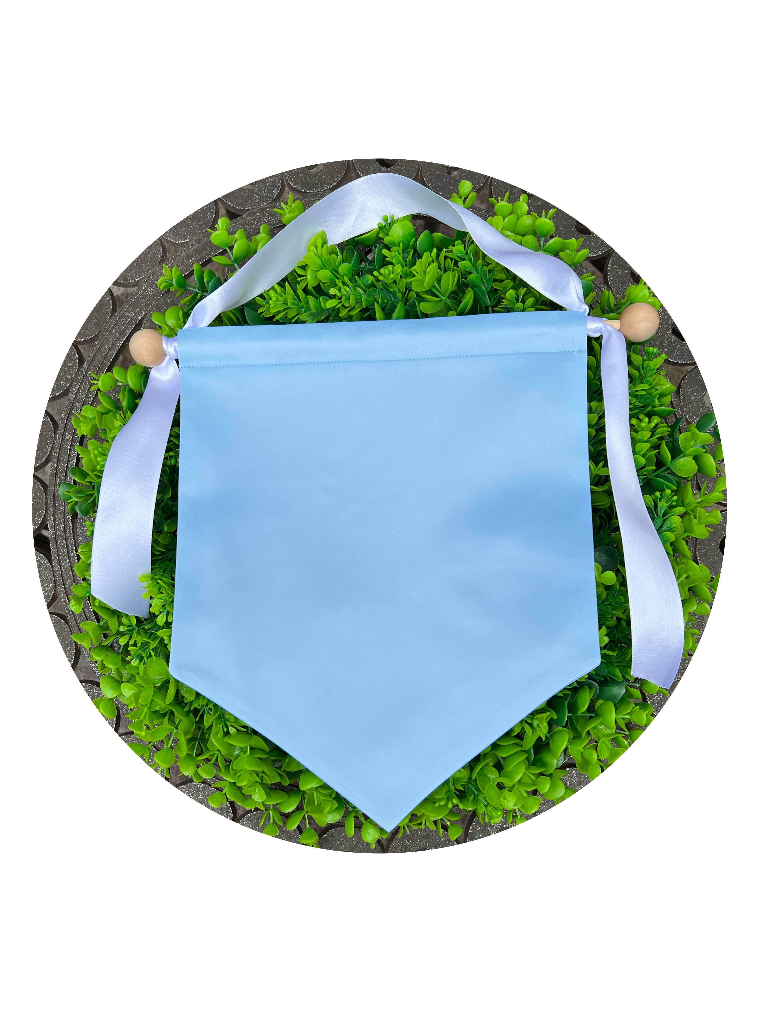 Banner sold with 12 inch wooden dowel and 1 1/2 inch wide satin ribbon!