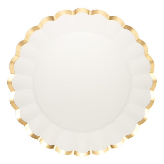 Scalloped Charger Plate Gold & White/8pkg 400gsm, FOIL