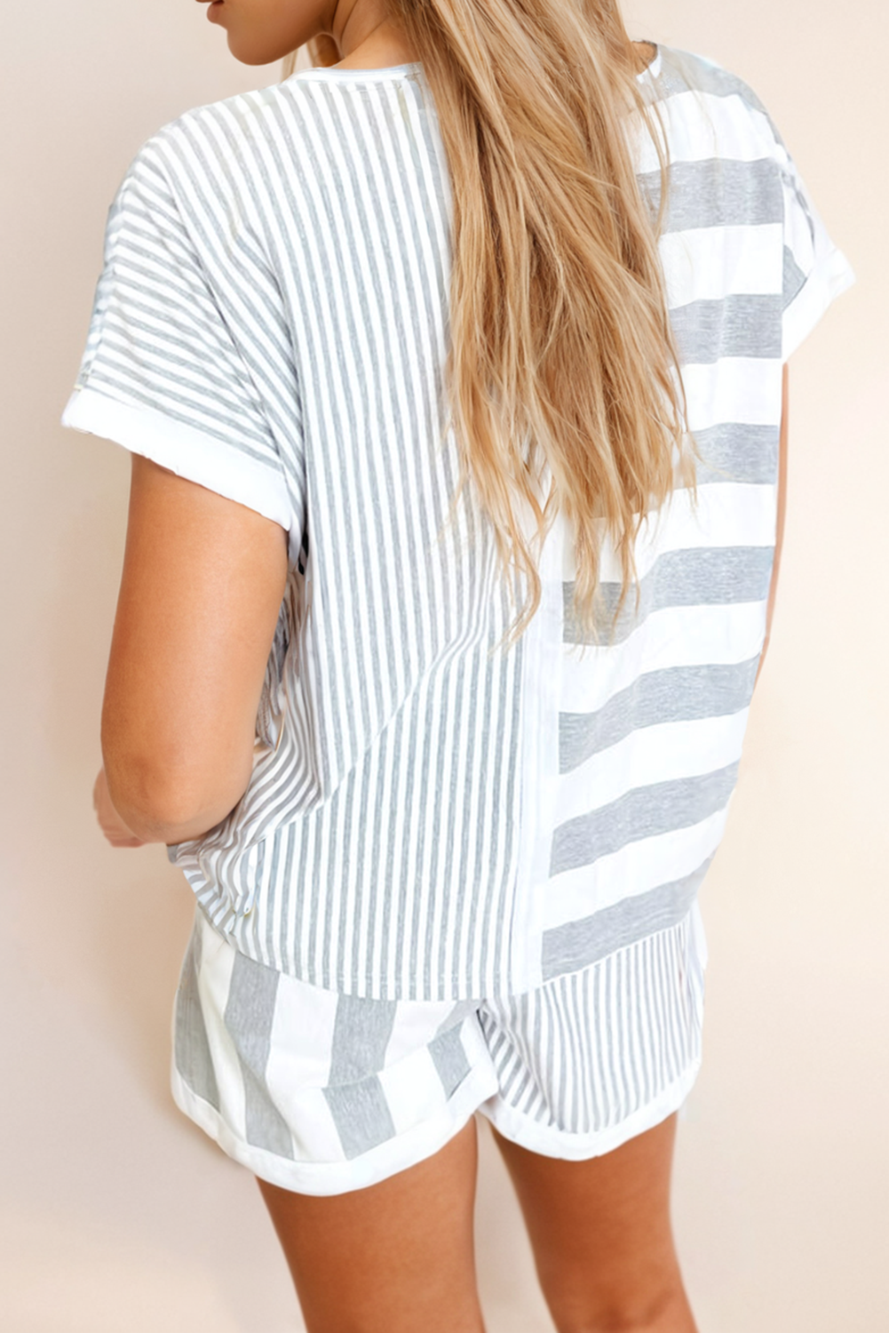 Stripe Mixed Print Short Sleeve Top and Shorts Set
